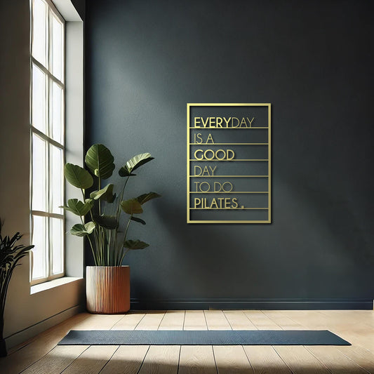 The Motivational collection features modern metal wall quotes designed to inspire Pilates lovers and fitness enthusiasts. With phrases like 'Every day is a good day to do Pilates,' these pieces bring energy and motivation to studios, gyms, or home spaces. Both decorative and uplifting, they add a positive spirit to daily workouts.