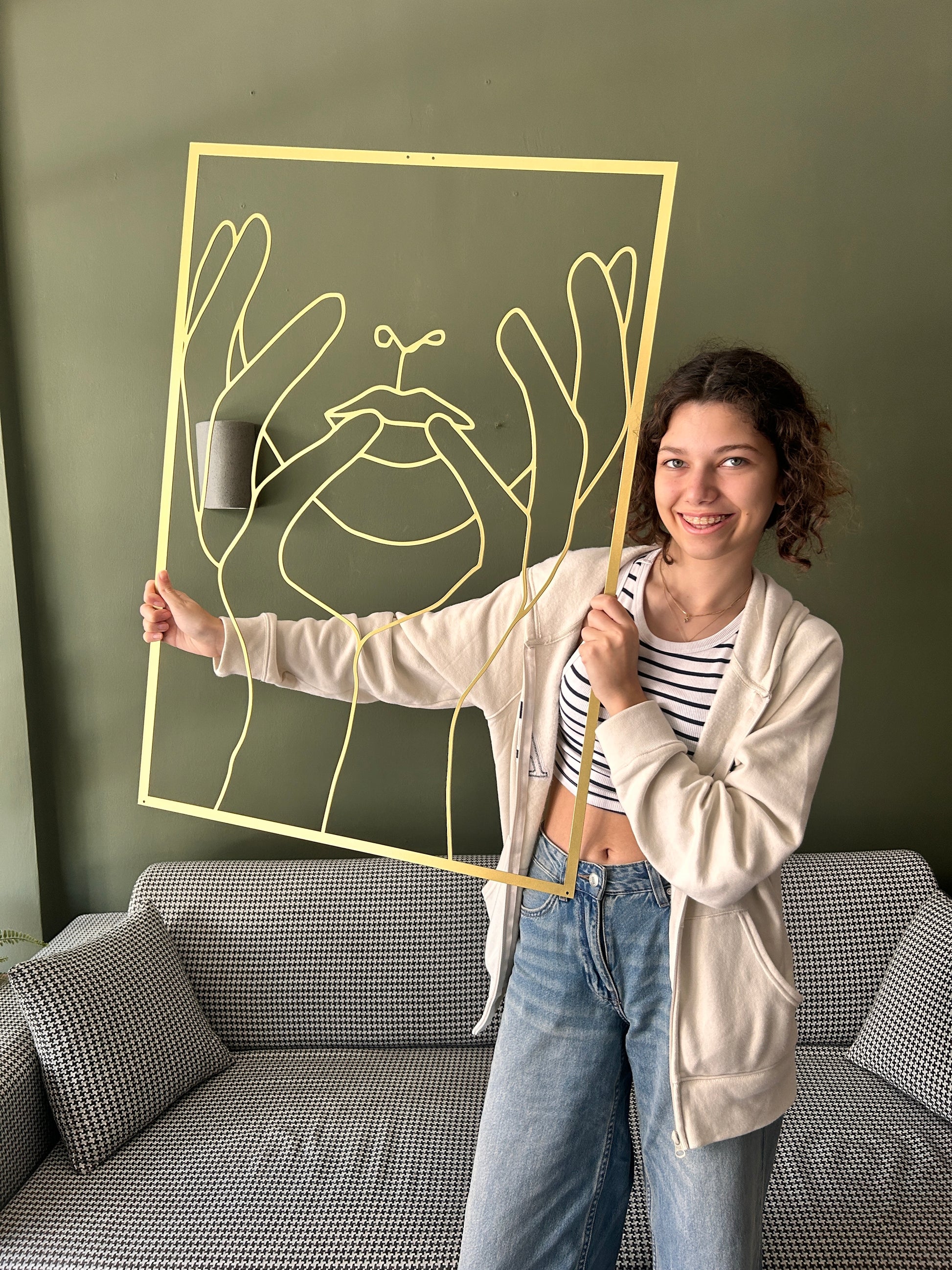 Looking for impressive and minimal wall art for your home? This Gold Wall Decor will perfectly add character to your modern or mid-century home. Female line art can be part of your Bedroom, Living Room, and Entry walls. If you want to use this metal artwork for your office, it is also a perfect wall hanging for your modern office decor.